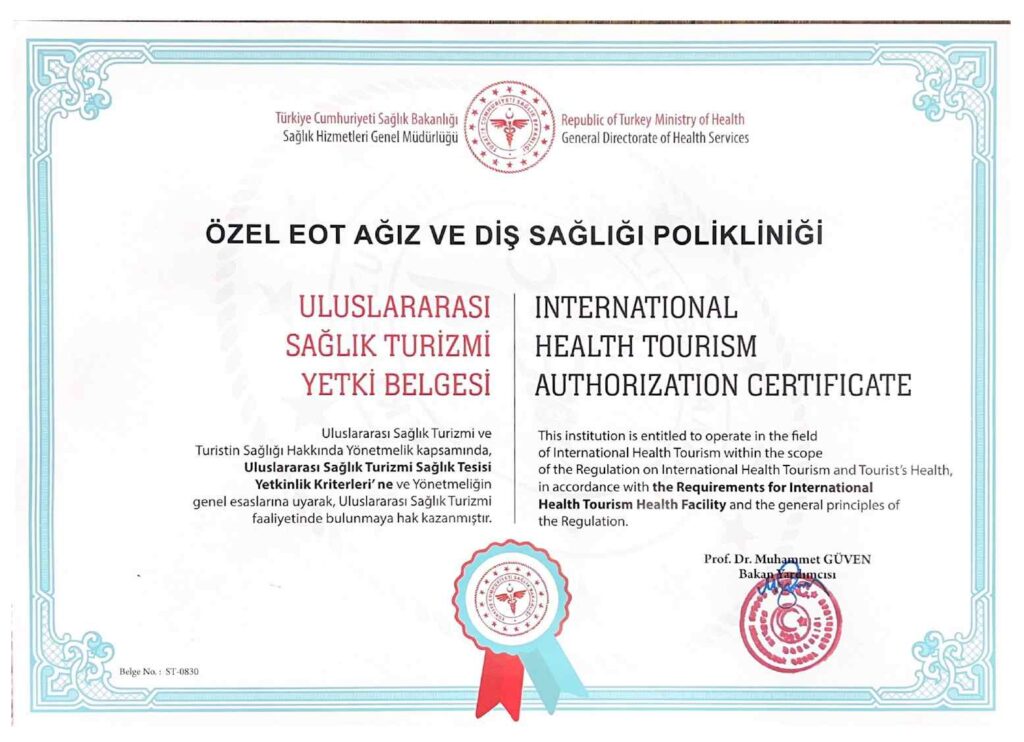 uluslararası sağlık turizmi yetki belgemiz